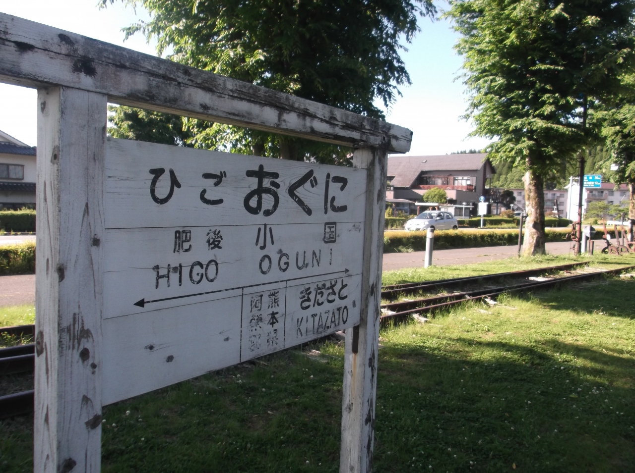 1984年に廃止になった宮原線の終着駅の肥後小国駅跡に位置しています。