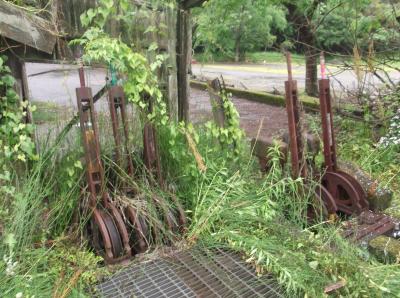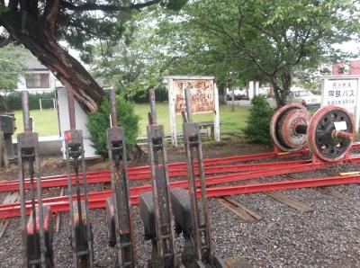 駅があったことを示すようにプラットホーム(復元)、レール、車輪、遮断器などがありました。
