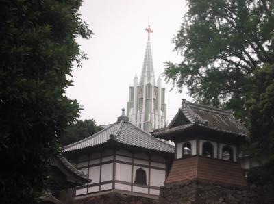 振り返ると寺院の奥にザビエル記念協会が見えます。