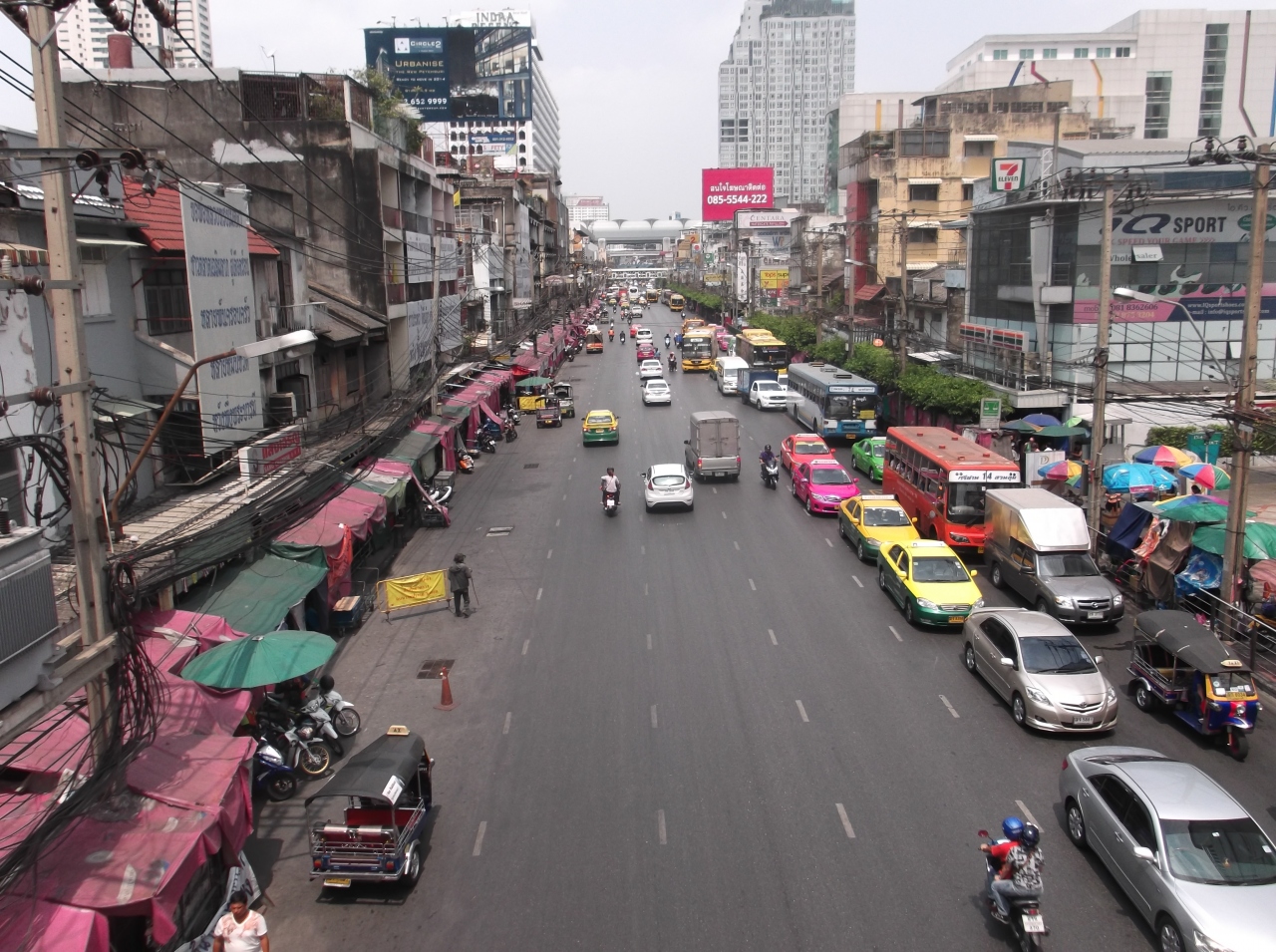 ラーチャプラーロップ駅(エアポートレイルリンクのシティライン)を降りたところを南北に通りはあります。