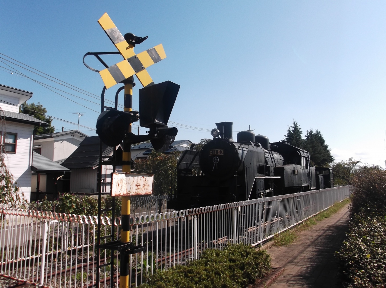 途中にはSLも展示さていて昔は鉄道が走っていたことが偲ばれます。