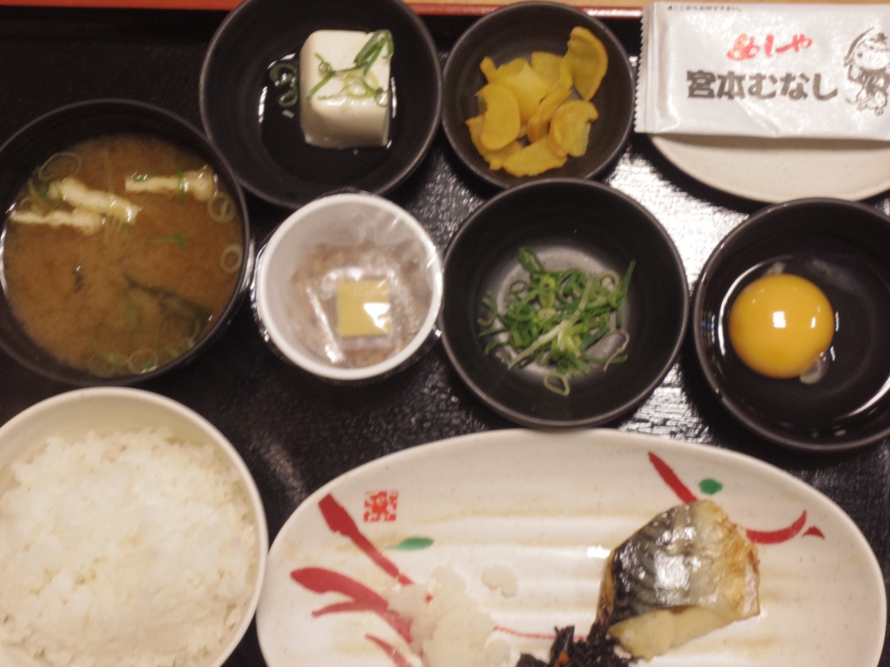 和定食はご飯、みそ汁、塩サバ、納豆、焼き海苔、冷奴、生卵、お新香と品数が多いです。ご飯はおかわりできます。