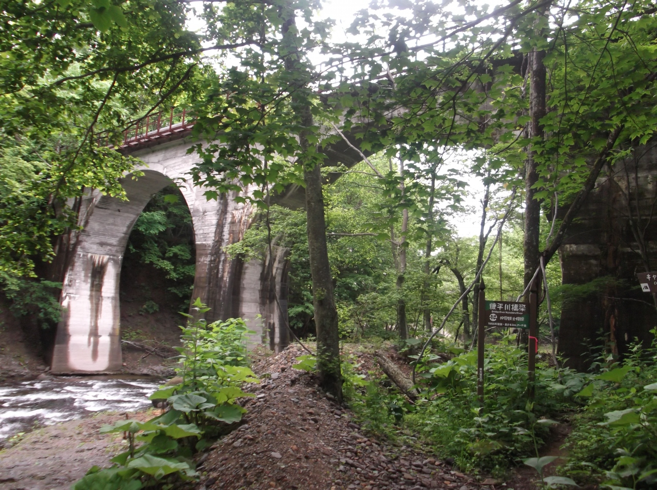 ひがし大雪アーチ橋友の会作成のマップを持参して士幌線跡を第三音更橋梁から十勝三股駅跡まで4時間かけて探索しました。