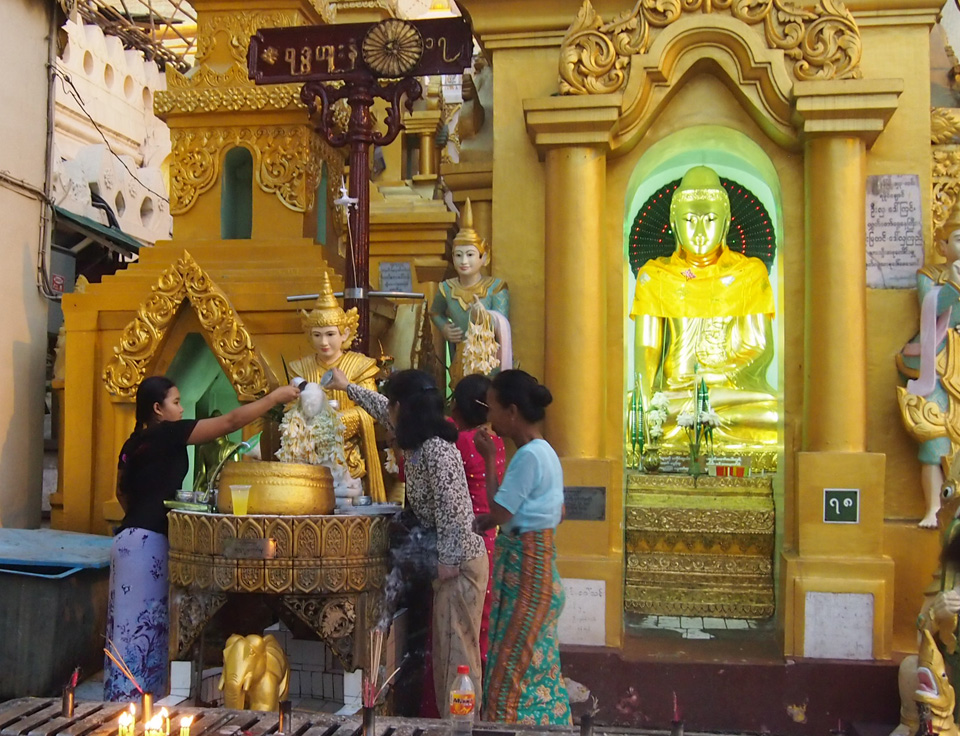 ヤンゴン市内の中心部にあるパコダです。 他のパコダは円形ですが、このスーレーパコダは、八角形です。 入り口で拝観料を支払いました。 拝観料は、外国人のみに科せられているようでした。