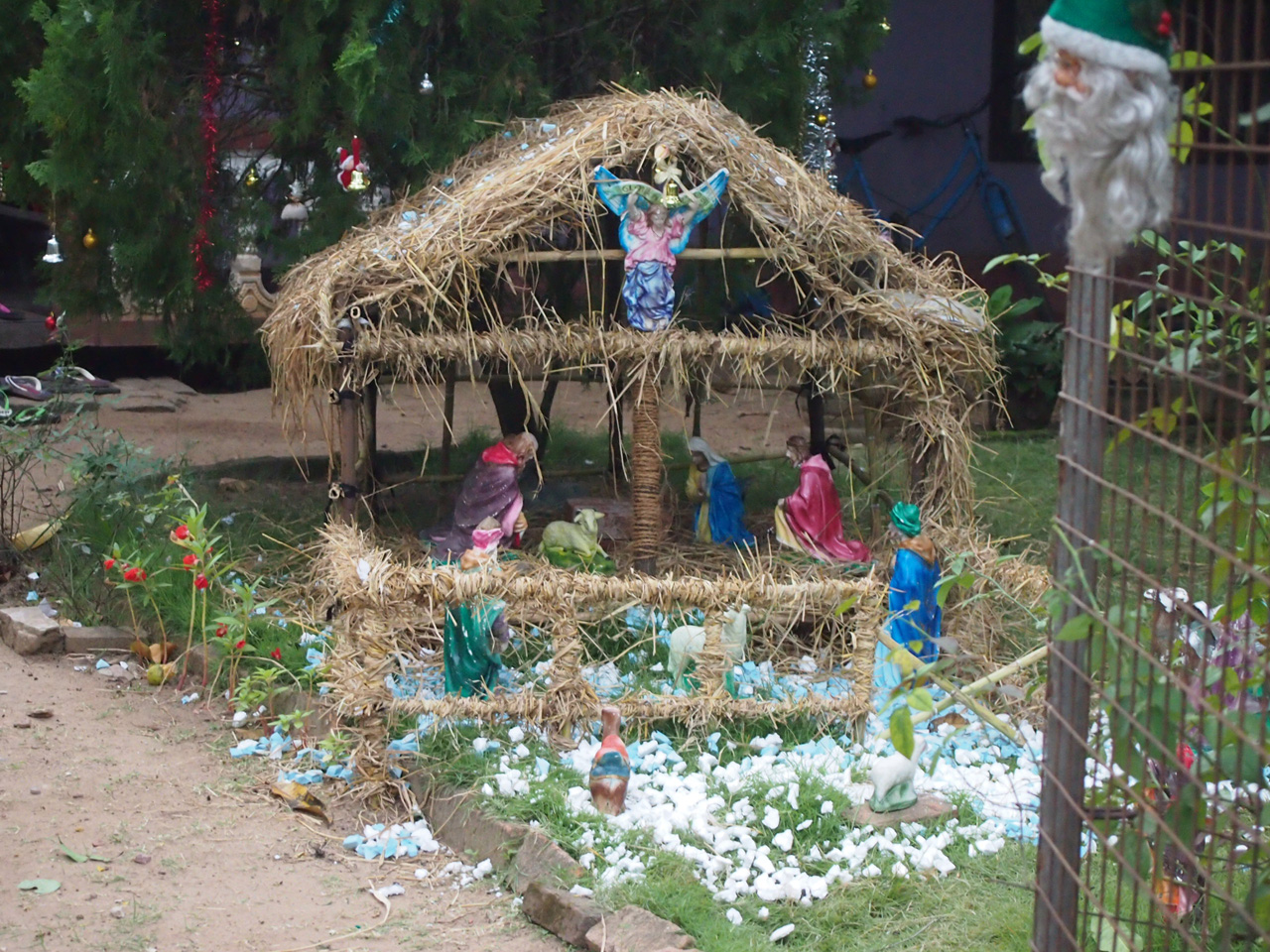 ニゴンボの街の郊外にあるホテルでした。 クリスマスイブということでホテルにはクリスマス飾りが置かれていました。 ただ、その飾りは、藁のようなもので馬小屋のようなものを作り、その中に動物などを配置したものでした。 キリストの生まれたときの様子を表したものと思われます。 初めて見るクリスマス飾りでした。 周りの民家を散策すると、どこの家にもそれぞれ同様な飾りが作られていました。