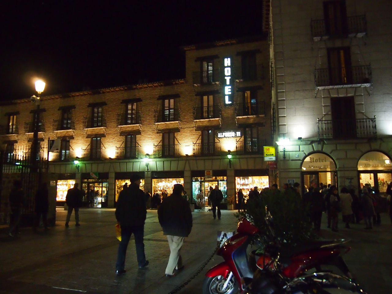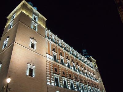歴史を感じるホテルでした。 目の前がトレドのシンボルの一つアルカサルでした。 暗くなってから到着。ドンキホーテの人形が出迎えてくれました。