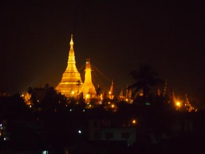 そして、最終日の今回は、カラウェイパレスで夕食をとり、8:00頃に到着しました。 窓を開けると、シュエダゴン・パゴダのライトアップされた姿が目の前にありました。