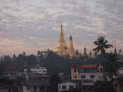 翌日、27日、6:00頃目が覚めました。 窓の外を除くと、シュエダゴン・パゴダがうっすらと見えました。