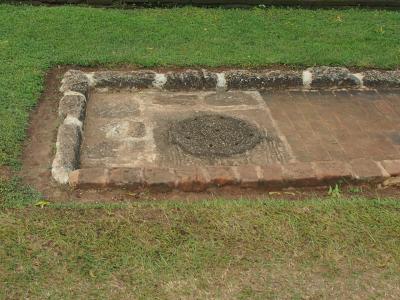 そのそそり立つ大きな岩自体みごとなもでした。そして岩の上に煉瓦積みの宮殿の後がありました。岩の途中にはきれいな色彩の女性の絵が描かれていました。この岩山に宮殿を建てた王様が描いたということです。