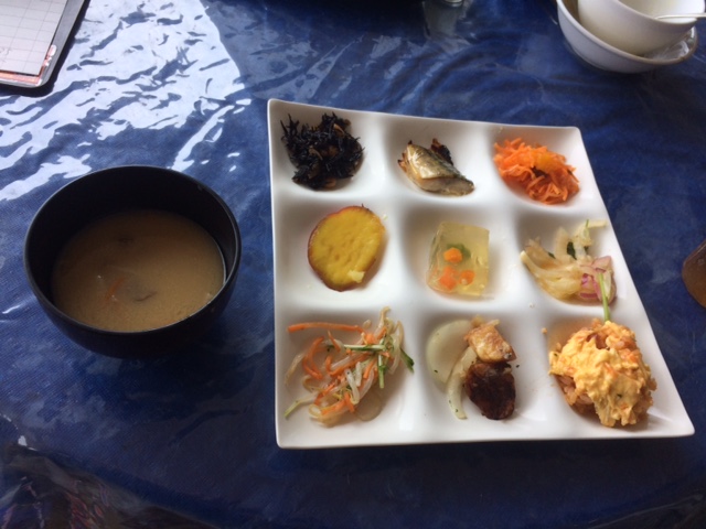 サラダは普通だけど、味噌汁は魚の出汁が効いていてとても美味。