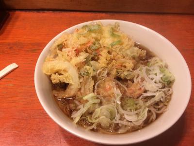 HUB新横浜からすぐのところにある立食い蕎麦屋の看板メニューはかき揚げ蕎麦。