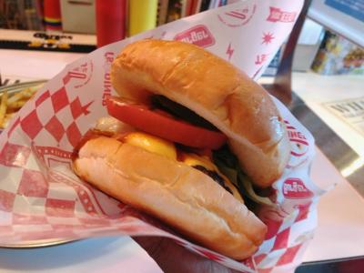 オープンカウンターの小さな鉄板で目玉焼きとパンケーキを焼いてくれる。
