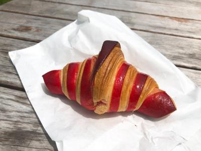 こちらのホットドッグ、柔らかいパンに挟まれたソーセージはパリッとジューシー系のやつ。- 旅行時期