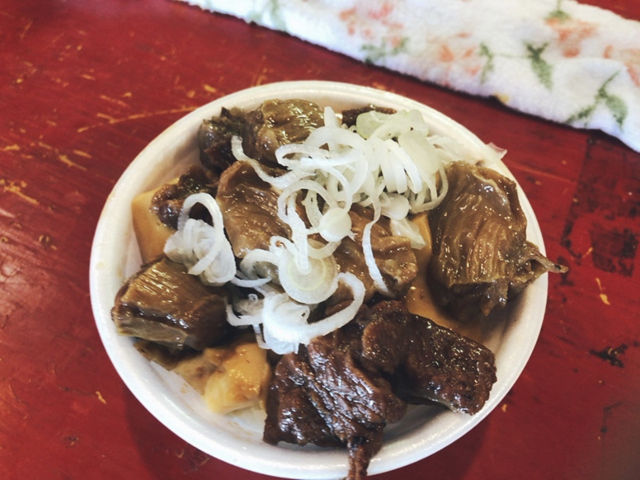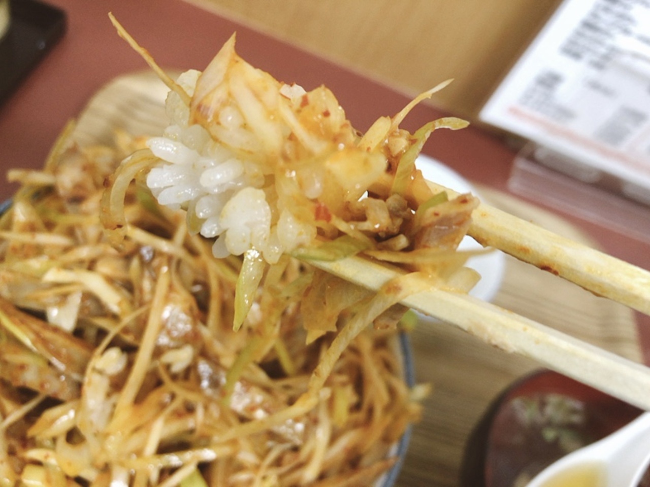 たっぷりのネギとこの店自慢の焼豚の細切りをコチュジャンなどの調味料で和えたトッピングがどっかと丼に乗ってくる。- 旅行時期