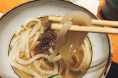 この濃いめのホルモンは薄口出汁の関西うどんとの相性が抜群に良い。