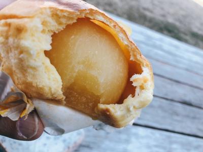 ちょっとお値段高めと感じるかもだけど、中にはりんごの甘煮がまるまるひとつ入っている。