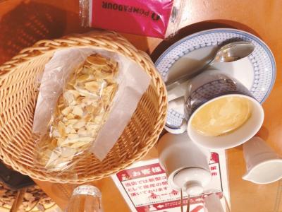 本店はカフェドポンパドウルという小さめのテーブル5つほどのイートインを併設しており、香に有したパンをその場でいただくこともできる。