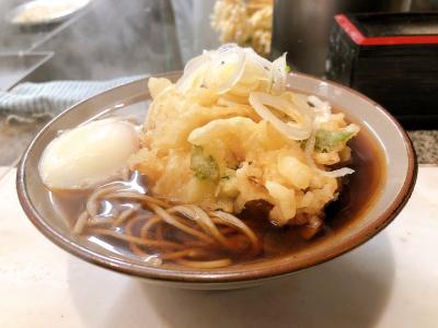 揚げたてホヤホヤではないにせよ、かき揚げはまだ温かいし、そばつゆも熱い。