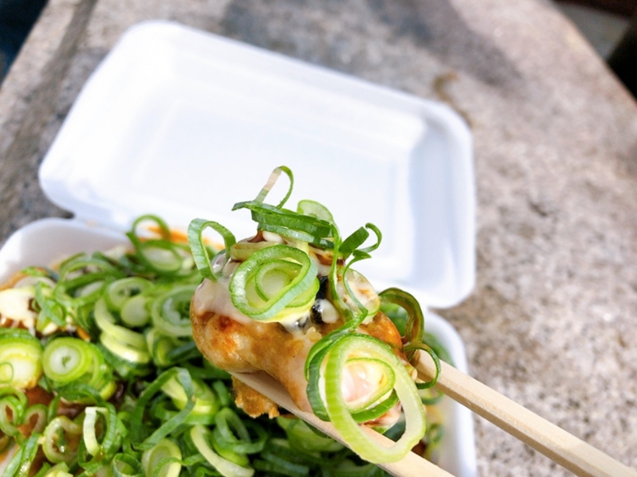 イートインなしであるにもかかわらず、若い子たちはこの店に並び、目の前の三角公園に適当な場所を探して腰を下ろしてたこ焼きを頬張る。