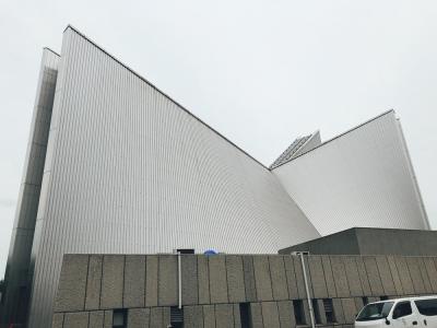 建造物として外観がとても不思議なデザインだが、中に入るとそのトライアングルの天井の高さに圧倒される。