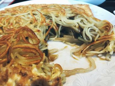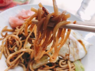 カリッと揚げた卵と焼きそばを箸で破るとその下に野菜たっぷりの餡が隠れていて、餡と焼きそばを混ぜて食べるこのスタイル、考案した人天才だわー。
