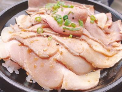 ってことでローストポーク丼、うすーくうすーくスライスした桜色のローストポークをふんだんに白米の上に載せ特製のタレで仕上げている。- 旅行時期