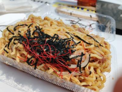 マリノスのホームゲームのキッチンカーで1000円の焼きそば、しかも開店前から行列ができるとは。
