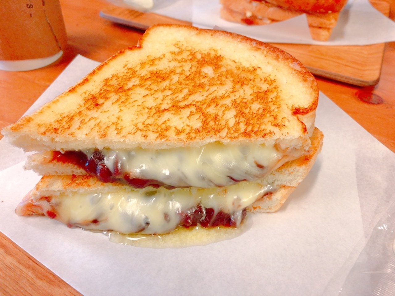 たっぷりのチーズを挟んだサンドイッチを鉄板の上でじゅーーーっと焼いてくれるホカホカのトースティ、お値段は450円から。