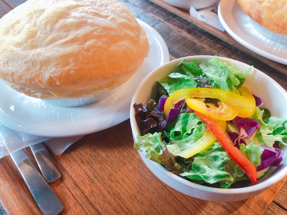 ほかほかサクサクのポットパイに、さっぱりとしたドレッシングのフレッシュサラダとコーヒーのセットはとっても贅沢な気分になりますぜ。- 旅行時期
