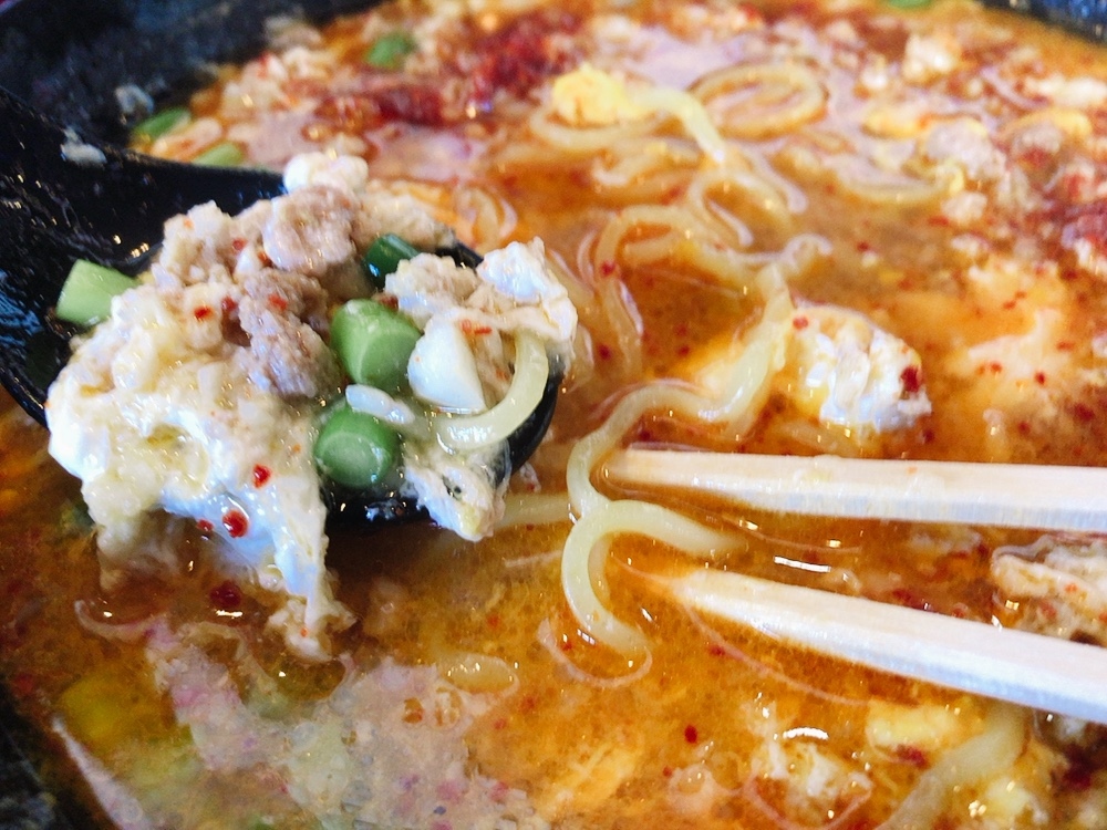 そんな小生でもから美味さを棚惜しみながら最高の気分で完食できるのが、”挽肉玉子のピリ辛にんにくラーメン”