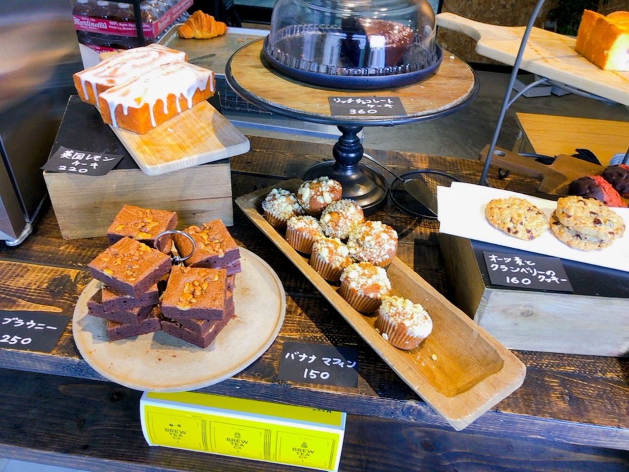 扉を開けるとうちっぱなしの内壁、奥にはバックヤード。そして手前にはイギリス焼菓子がまるで装飾の並んでいる。
