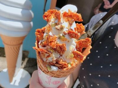 ソフトクリームは溶けるのも早いので、購入したら3密を避けながらでもイートインで楽しむべし。- 旅行時期