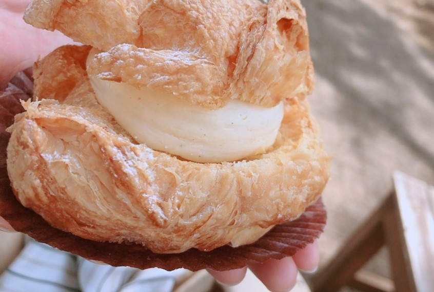 軽いバウムクーヘンのに濃厚なベイクドチーズケーキがセットになったチーズインバウムは甘さ控えめでレモンの香りが心地よい。- 旅行時期