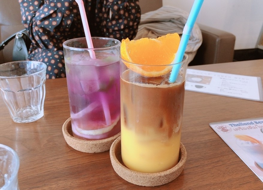 メニューを見ると、あれあれ、見たことのないタイをテーマにしたドリンクばかりで、アイスコーヒーとか、コーラとか普通のメニューがない。