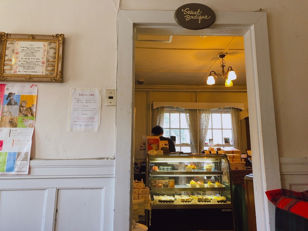 1階は喫茶、階段を上がると2階はテイクアウトコーナーとなっていて自慢の洋菓子が単品で並んでいる。