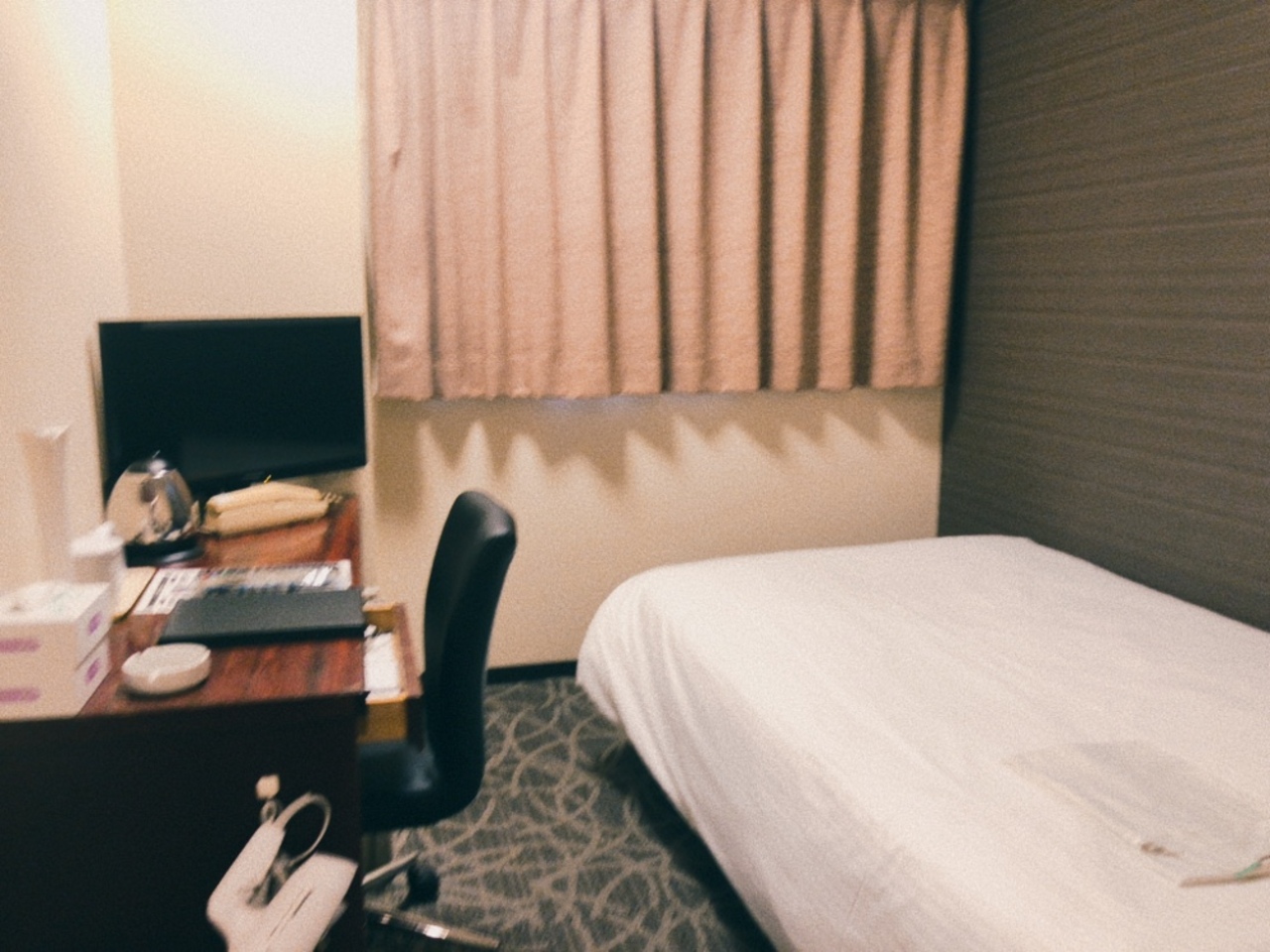 お部屋はシングルだが想定より随分広いし、ポットもしっかり準備されていて、大きめのテレビは壁掛け。- 旅行時期