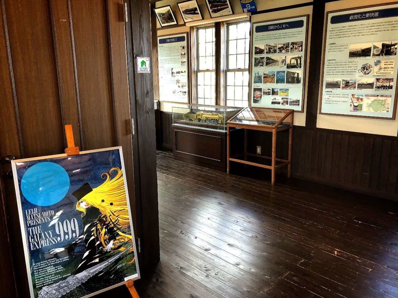 松本零士の銀河鉄道999のイラストが至る所に飾られている。