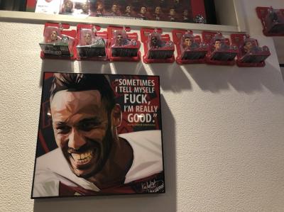 店内に入ってみるとアーセナルのグッズが壁一面にデコレートされている。