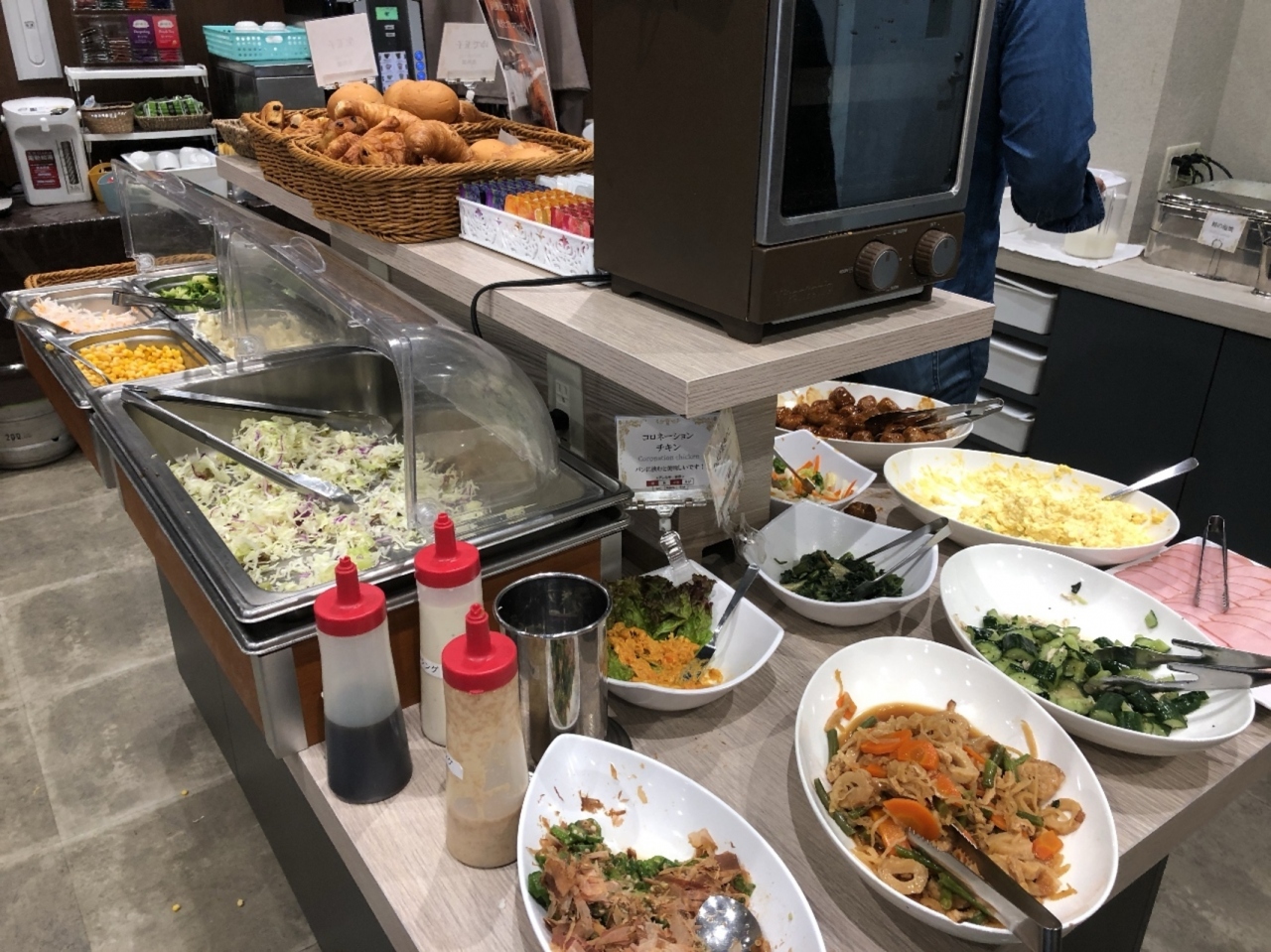 特に野菜類はとっても充実していてビジネスホテルの無料朝食ビュッフェとしてはかなりいいんじゃないかと。