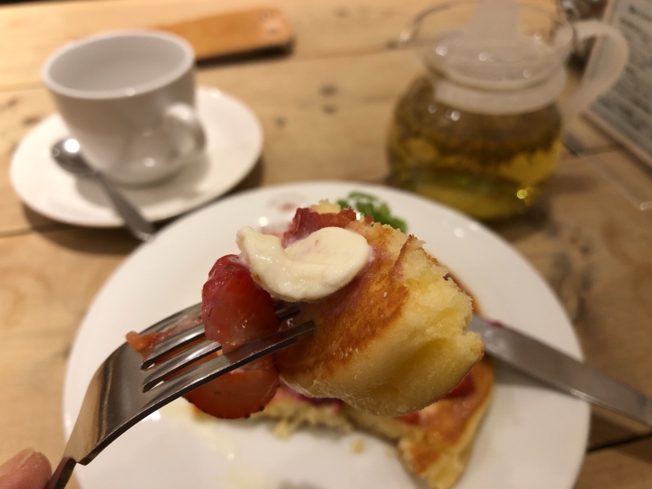 生地のしっかりしたベリーパンケーキのセットはカシミールと最高に相性が良い。