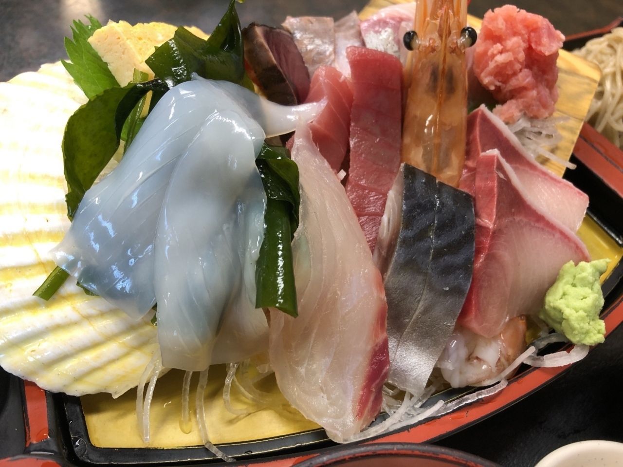 魚のみならず定食関係のメニューが豊富で市場で働く方々の胃袋をこに店も支えているのねと感じるが、やっぱりここで頼むなら舟盛り定食がオススメだろう。