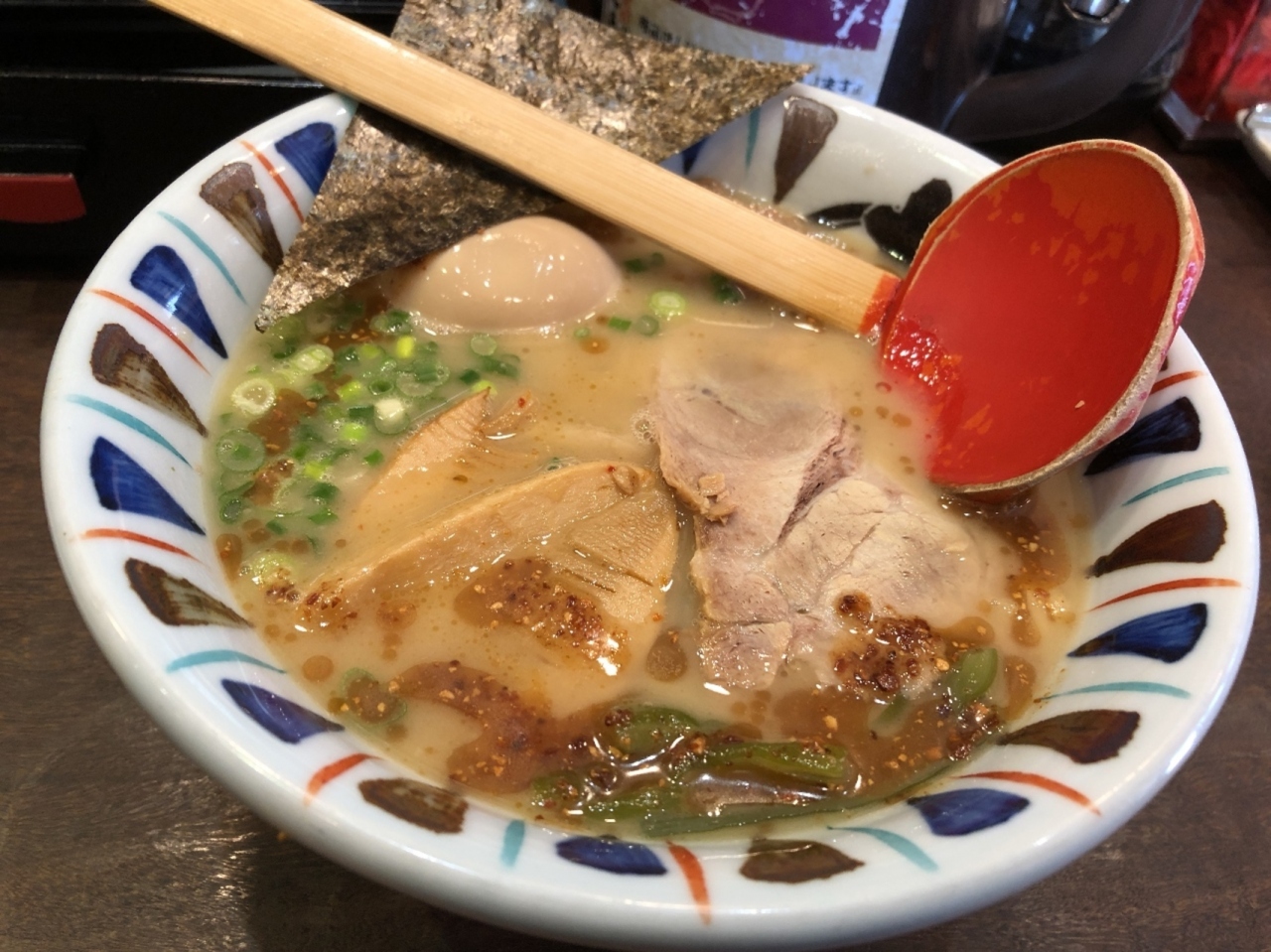 特筆すべきはとんこつスープの上にほんの少しだけ浮かんだ胡麻とニンニクの焙煎のたれ。- 旅行時期