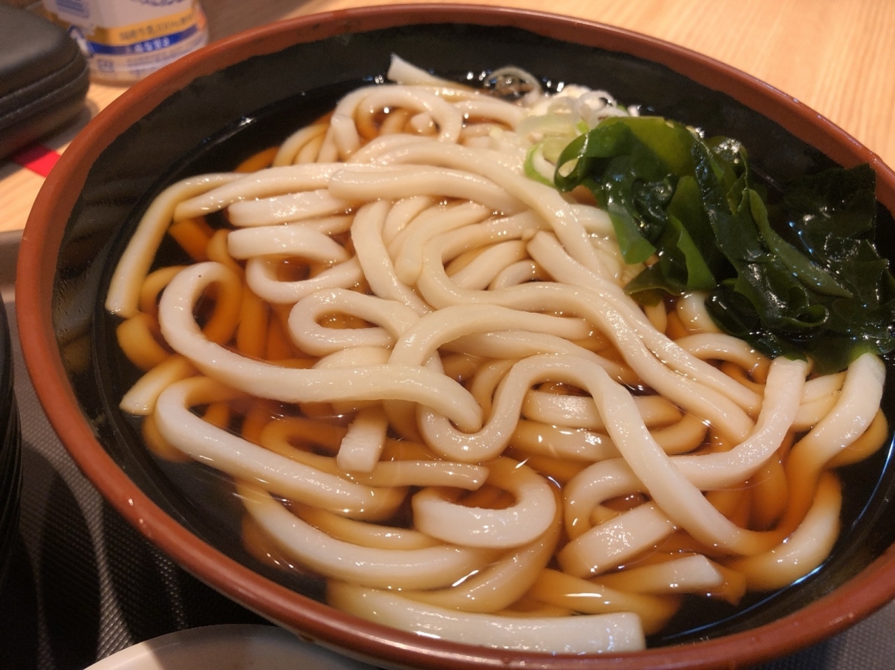うどん そばを選択できるがこちらにトッピングはついてないので必要な時は別途カウンターで注文する必要がある。