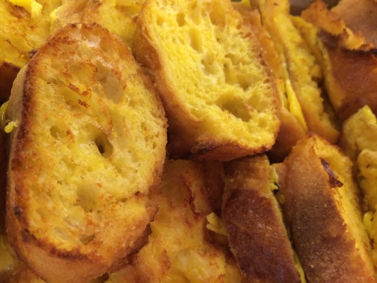 フランスパンを大量の卵と牛乳にしっかり浸してふんわりフワフワに焼き上げたフレンチトーストがどっかとオープンキッチンの前に並べられこれが食べ放題。