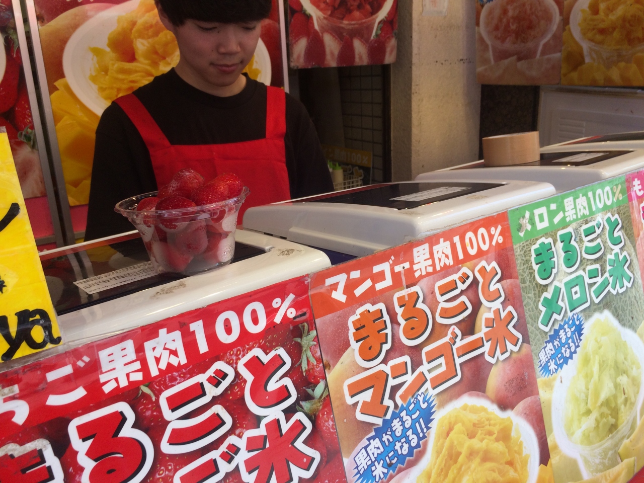 神戸の中華街にある、ミキヤは、フルーツをそのまま凍らせてそれをガリガリ削って出してくれる。