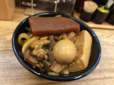 デラ肉めしは、更に煮卵とお豆腐と同じサイズの煮込んだ大根がつく。