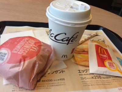 モーニングサービスのベーコンエッグサンドとドリンクのセットが税込360円。