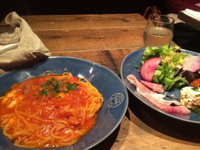 ランチは、スパゲティを選ぶと500円でランチプレートをつけることができる。