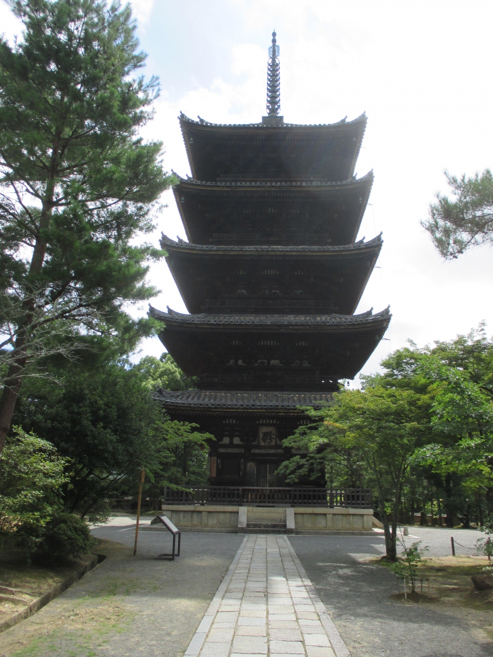 高さ30M以上あります。仁和寺のHPによると、「東寺の五重塔と同様に、上層から下層にかけて各層の幅にあまり差が見られない姿が特徴的です。」とのこと。そういえば、上に行くにしたがって細くなっていないな~と思っていました。