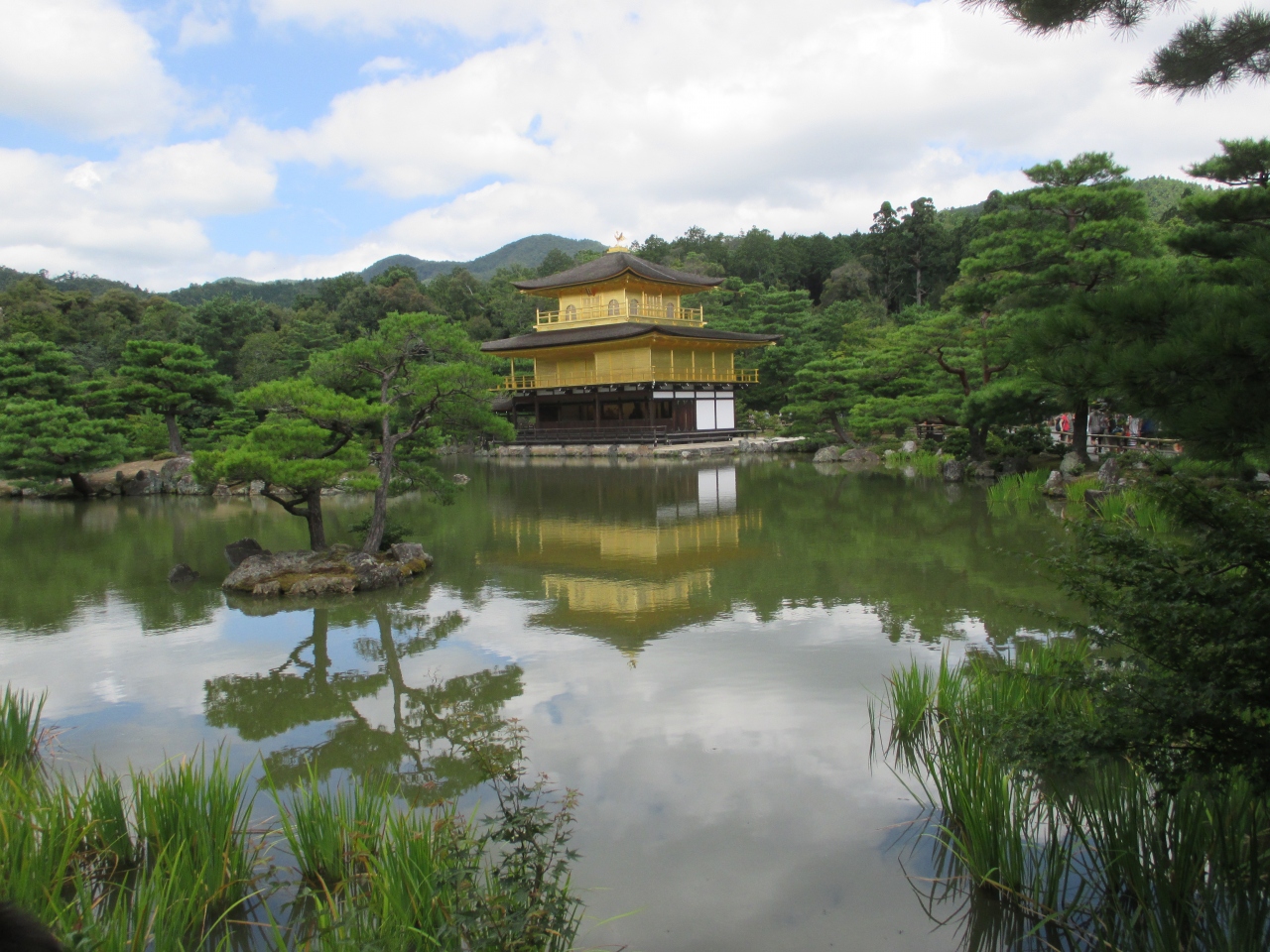 京都観光では外せない定番スポットですね。海外からの旅行客も多く、人でごった返していました。人を引き付ける魅力のあるお寺だと思います。GOLDがまぶしいです。池に浮かぶ逆さ金閣も良いな~と感じて写真を撮りました。